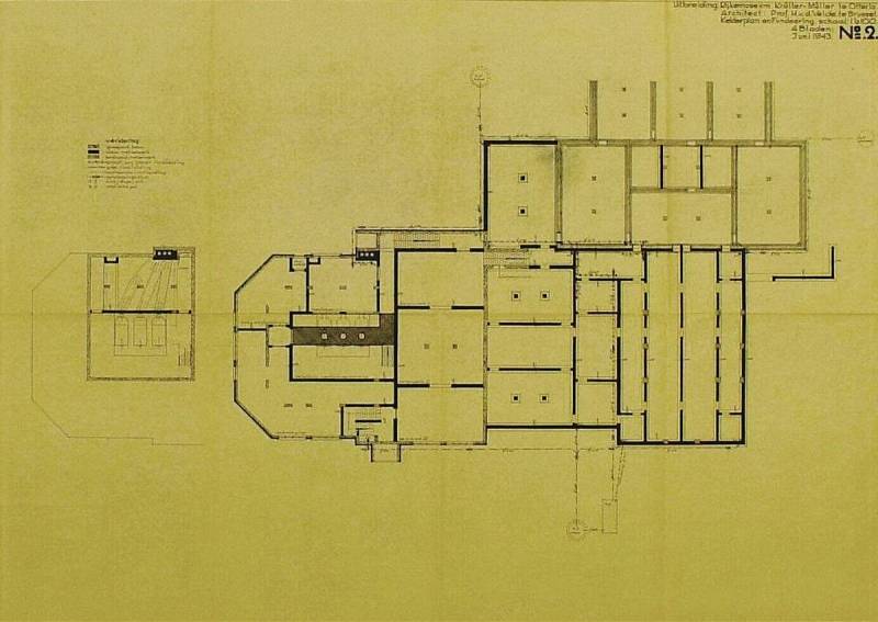 Ontwerp uitbreiding Rijksmuseum Kröller-Müller: Kelderplan en fundering, June 1943