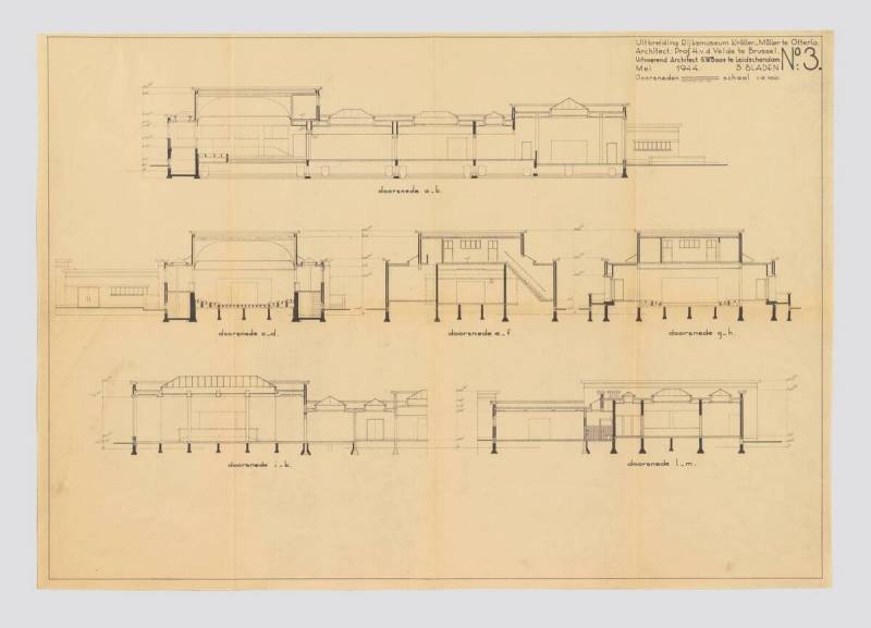 Ontwerp uitbreiding Rijksmuseum Kröller-Müller: Doorsneden, May 1944