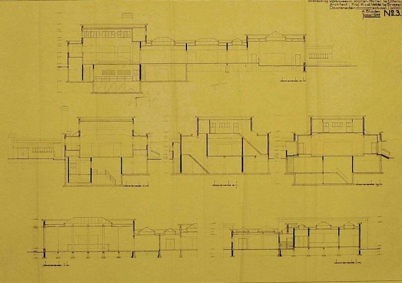 Ontwerp uitbreiding Rijksmuseum Kröller-Müller: Doorsneden a-b, c-d, e-f, g-h, i-k en l-m, January 1944