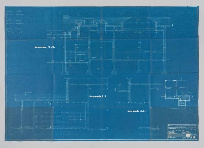 Ontwerp uitbreiding Rijksmuseum Kröller-Müller: Doorsneden over de toiletten, 11 July 1946