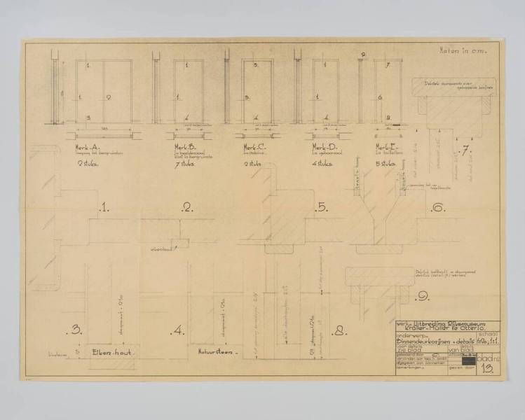Ontwerp uitbreiding Rijksmuseum Kröller-Müller: Binnendeurkozijnen + details, 30 August 1944