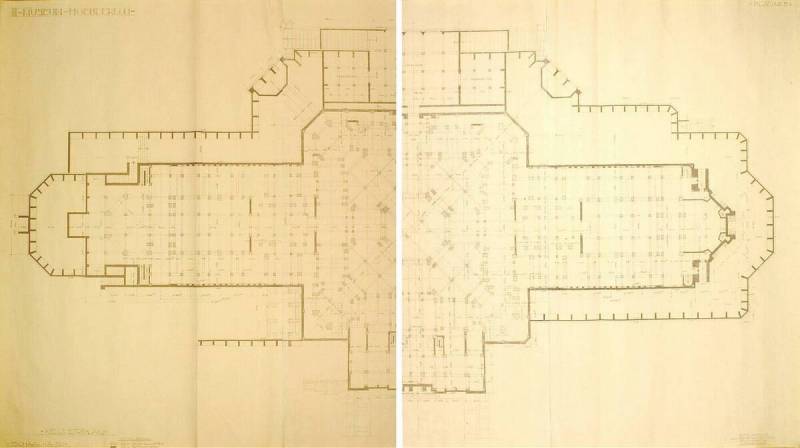 Design for the Museum on the Franse Berg: Basement Plan (Left, Centre and Right)
