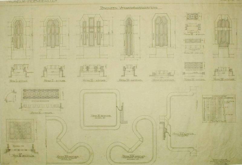 Ontwerp voor het museum bij de Franse Berg: Bronzen verwarmingsroosters, March 1928