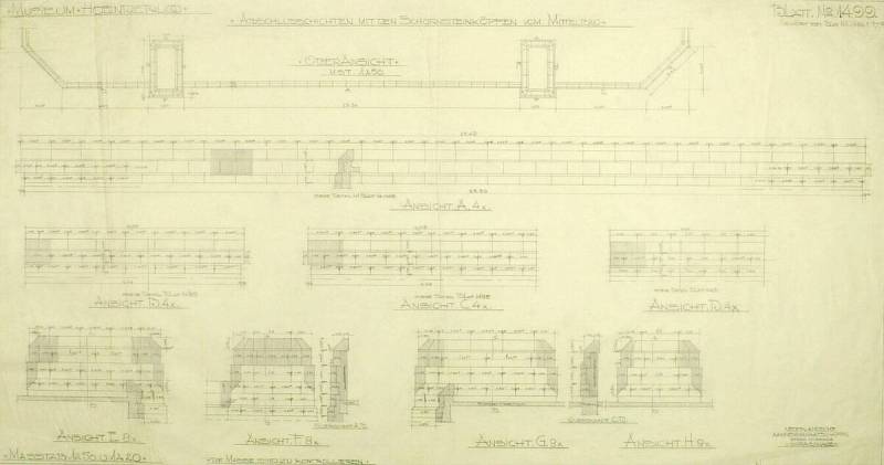 Ontwerp voor het museum bij de Franse Berg: Centrale gebouw (afsluitlagen met de schoorstenen), 15 November 1928