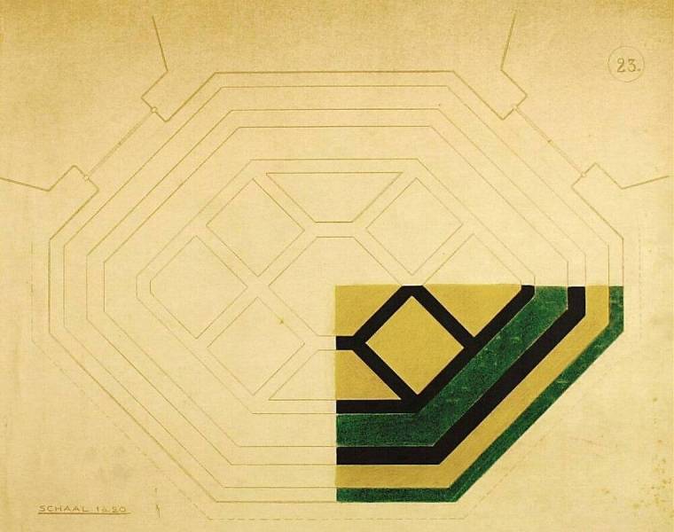 Ontwerp voor het museum bij de Franse Berg: Ingekleurde plattegrond ruimte 23, c. 1921-1928