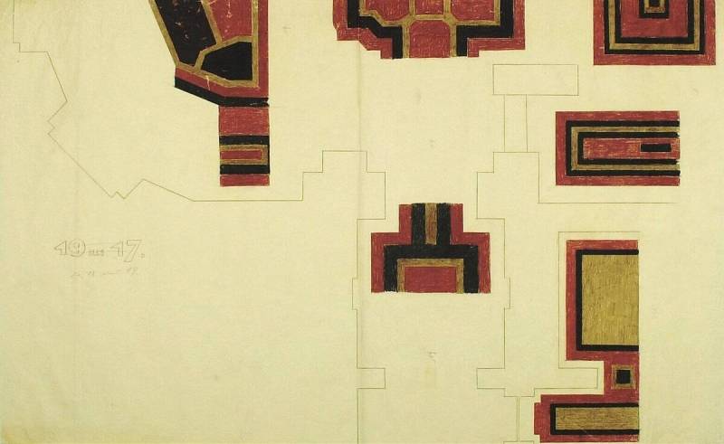 Ontwerp voor het museum bij de Franse Berg: Ingekleurde plattegrond, c. 1921-1928