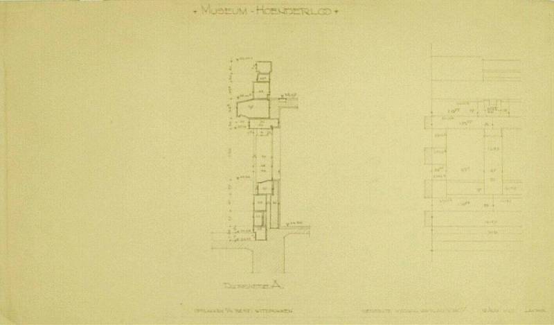 Ontwerp voor het museum bij de Franse Berg: Doorsnede A (gedeelte wijziging van blad 1407), 19 August 1927