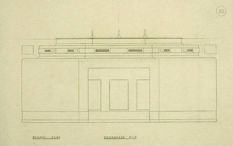 Ontwerp voor het museum bij de Franse Berg: Doorsnede C-D, c. 1921-1928