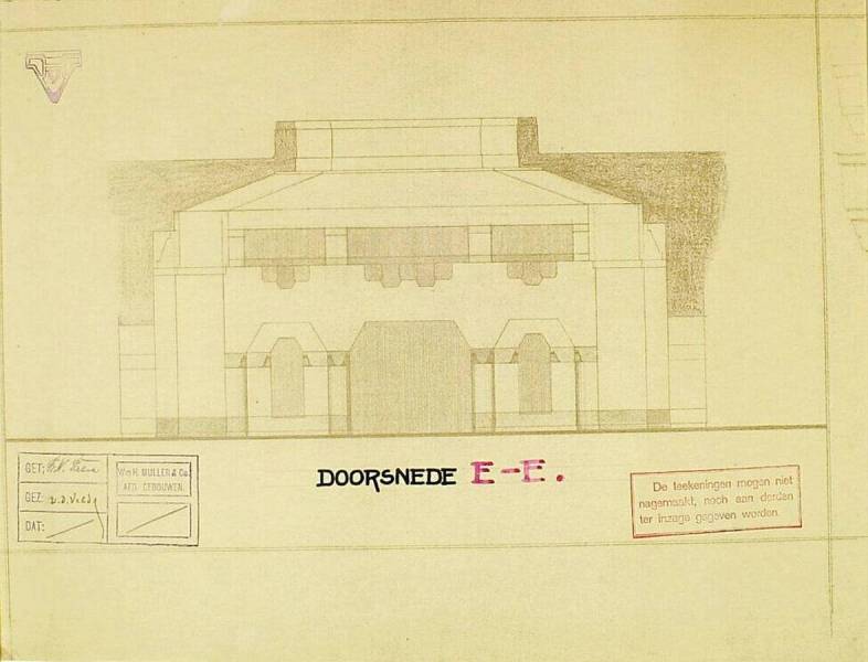 Ontwerp voor het museum bij de Franse Berg: Doorsnede E-E, c. 1921-1928
