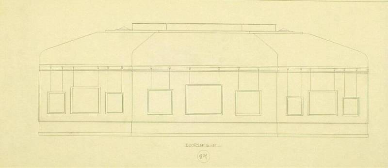 Ontwerp voor het museum bij de Franse Berg: Doorsnede E-F, c. 1921-1928