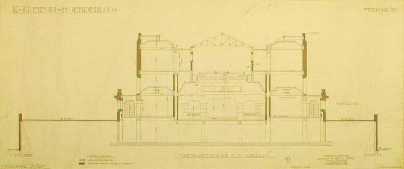 Ontwerp voor het museum bij de Franse Berg: Doorsnede zijvleugels, February 1928