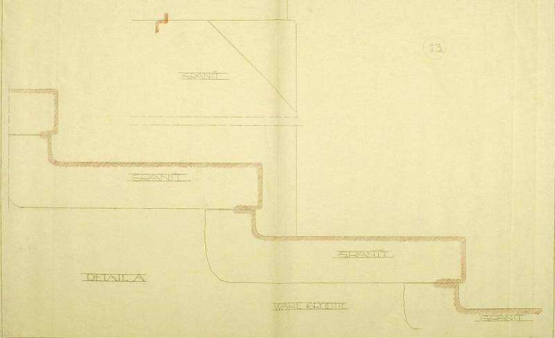 Ontwerp voor het museum bij de Franse Berg: Detail A (van de trap), c. 1921-1928