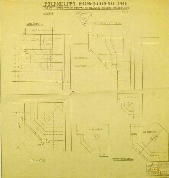 Ontwerp voor het museum bij de Franse Berg: Detail für die kleinen schrägen Ecken Westturm, 11 April 1923