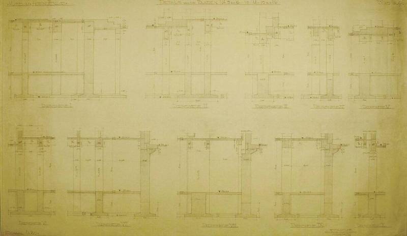 Ontwerp voor het museum bij de Franse Berg: Details van de bladen No. 5 en 6, 10, 11, 15 en 16, November 1928