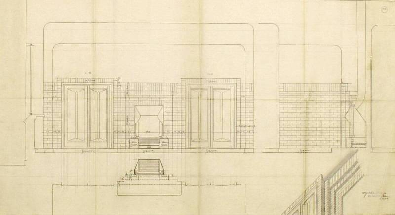 Ontwerp voor het museum bij de Franse Berg: Open haard en wandaanzicht (in de woonkamer), 5 October 1926