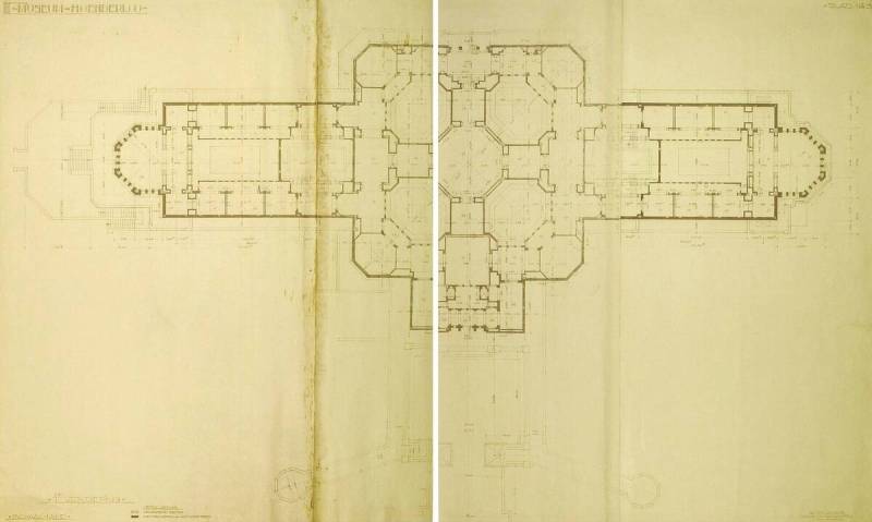 Ontwerp voor het museum bij de Franse Berg: 1e Verdieping (links, midden en rechts), January 1928