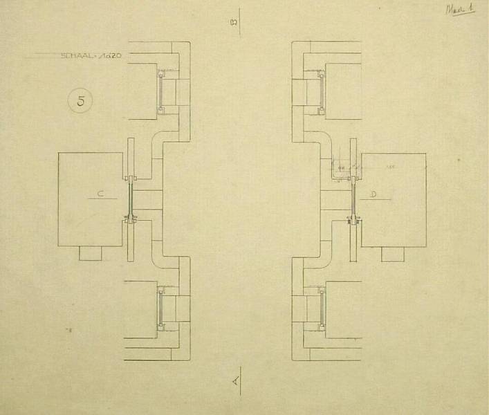 Ontwerp voor het museum bij de Franse Berg: Plattegrond met aanduiding AB en CD, c. 1921-1928