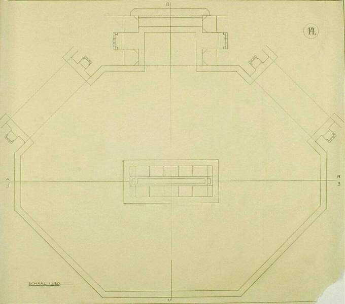Ontwerp voor het museum bij de Franse Berg: Plattegrond met aanduiding AB, CD en EF, c. 1921-1928