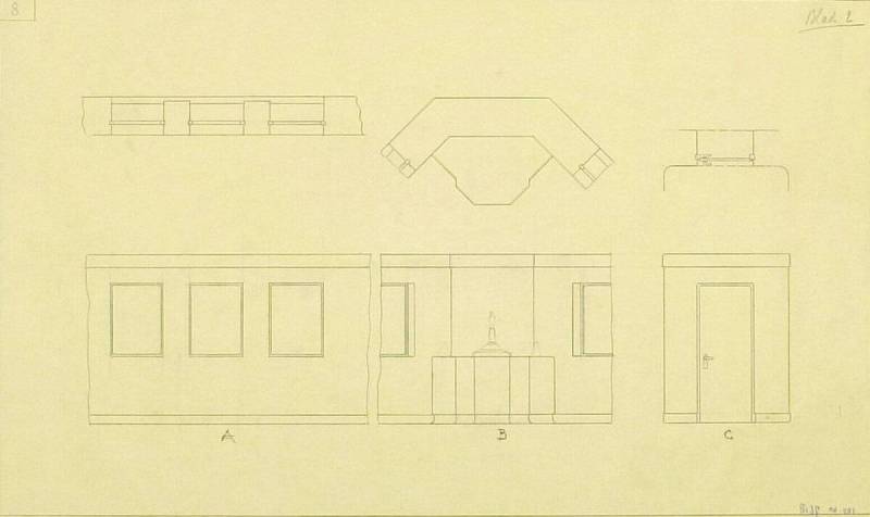 Ontwerp voor het museum bij de Franse Berg: Aan- en opzichten A, B en C (o.a. sokkel voor beeldjes), c. 1921-1928