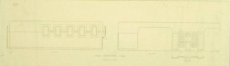 Ontwerp voor het museum bij de Franse Berg: Gang cabinetten 1. verdieping: (doorsnedes) E-F en G-H, c. 1921-1928