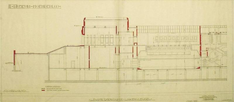 Ontwerp voor het museum bij de Franse Berg: Lengte doorsnede linkervleugel, February 1928
