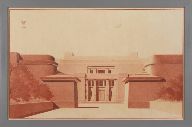 Ontwerp voor het museum bij de Franse Berg, hoofdingang, 1923-1926