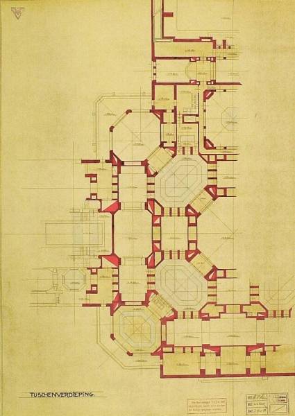 Ontwerp voor het museum bij de Franse Berg: Tuschenverdieping (helft van middendeel), 2 April 1924