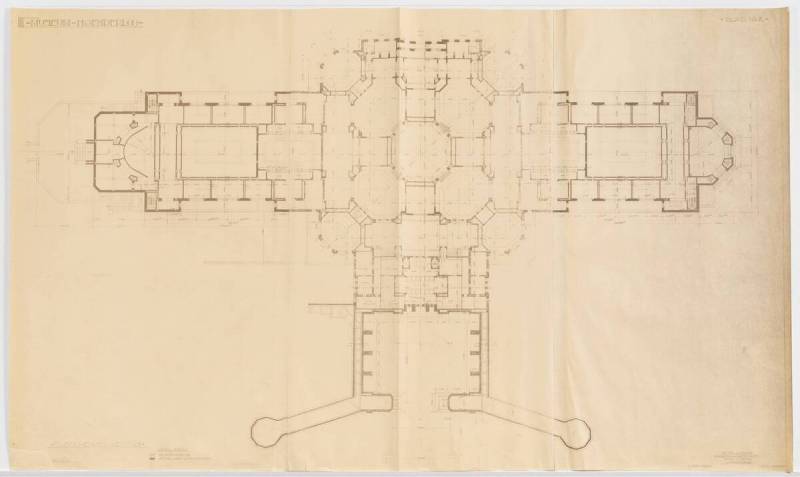 Ontwerp voor het museum bij de Franse Berg: Tusschenverdieping (links, midden en rechts), January 1928