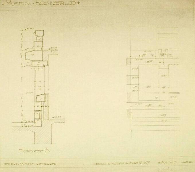 Ontwerp voor het museum bij de Franse Berg: Gedeelte wijziging van blad no. 1407, 19 August 1927