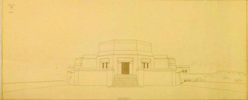 Ontwerp voor het museum bij de Franse Berg: Perspectief: oostgevel, 1923