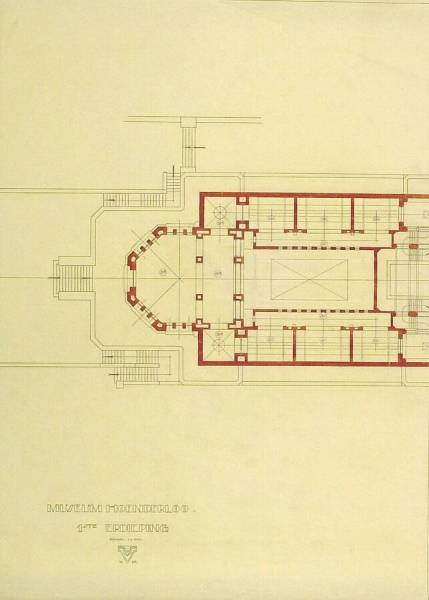 Ontwerp voor het museum bij de Franse Berg: Plan van de 1ste verdieping (linker deel), 1925