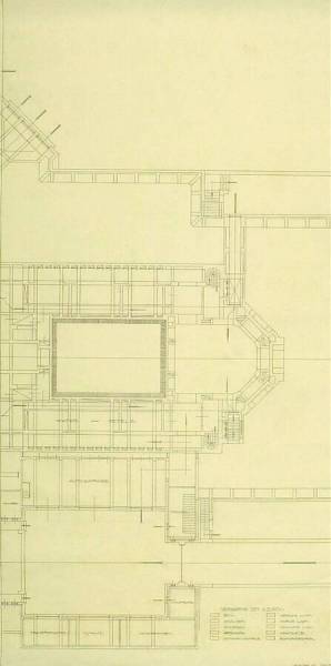 Design for the Museum on the Franse Berg: Plan of the Basement (Right-Hand Side) and the Service Building (Car Garage, Bicycles, Drivers, Water Pumps, Dynamo, Transformer, (Bed)Rooms)