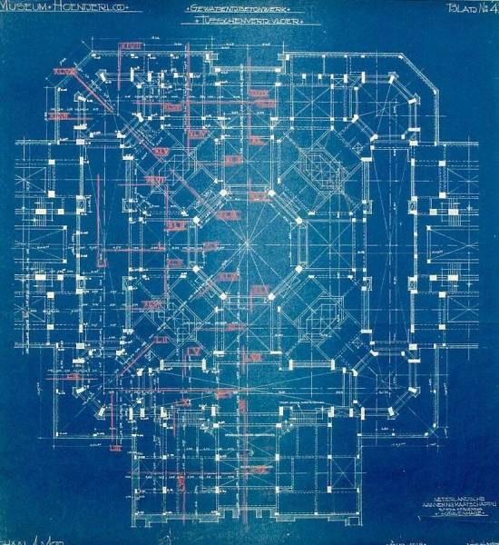 Ontwerp voor het museum bij de Franse Berg: Gewapendbetonwerk tusschenverdiepingvloer, August 1928