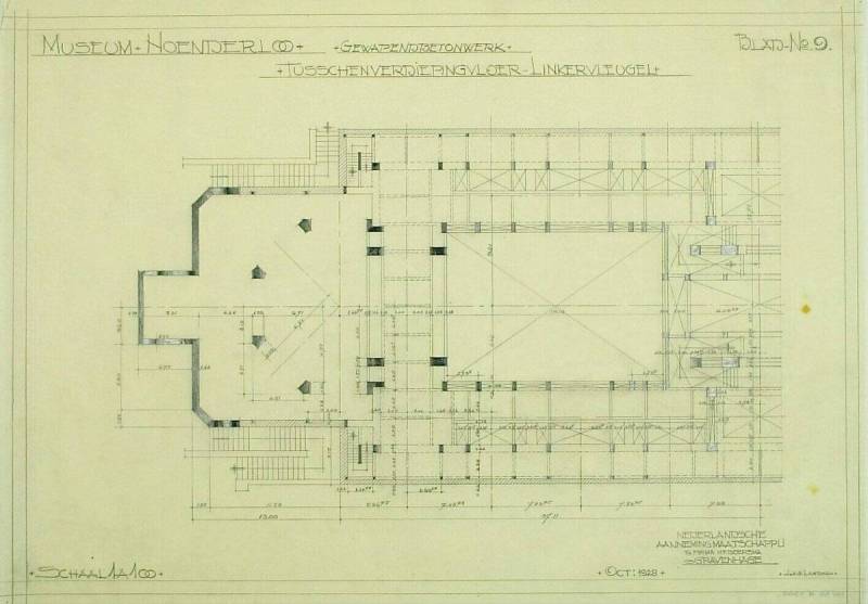 Ontwerp voor het museum bij de Franse Berg: Gewapendbetonwerk tusschenverdiepingvloer linkervleugel, October 1928