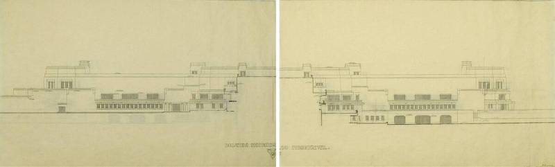 Ontwerp voor het museum bij de Franse Berg: Aanzicht noordgevel, 21 June 1923
