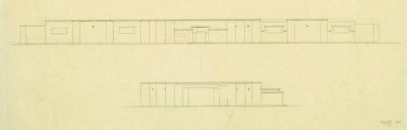 Ontwerp voor het museum bij de Franse Berg: Twee gevelaanzichten, c. 1921-1928