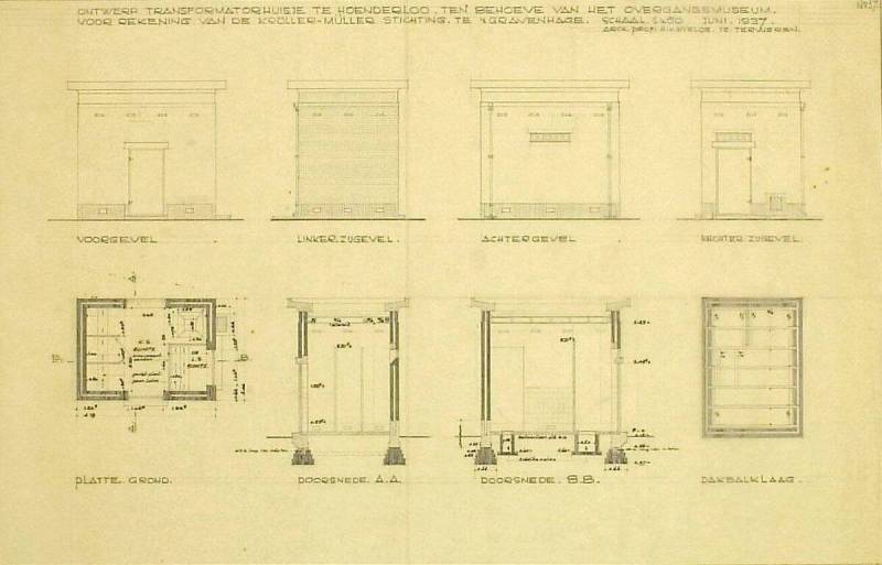 Ontwerp transformatorhuisje te Hoenderloo ten behoeve van het overgangsmuseum voor rekening van de KMS te 's Gravenhage, June 1937