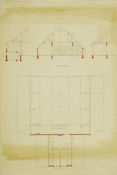 Farmhouses, 'Hoog Barel', Cross-Sections A-B, C-D and E-F and Floor Plan