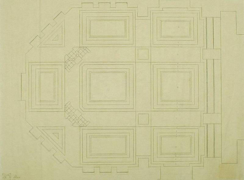 Plattegrond met patroon van vloerbedekking en opzicht van de twee banken, date unknown