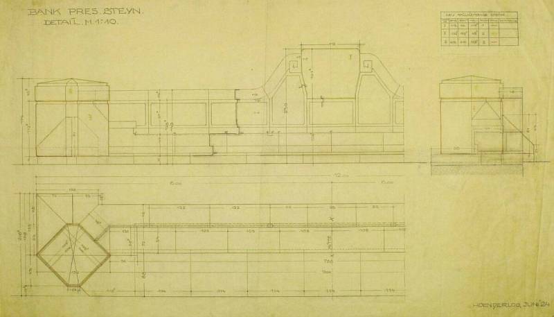 Steynbank: aanzicht, doorsnede, plattegrond, June 1924