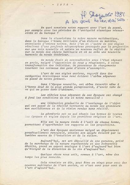 En quoi consiste notre rapport avec l'art du passé ... (manifest), 1976 (opschrift 1980)