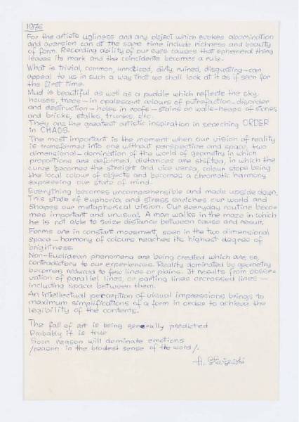 For the artists ugliness... (manifest), 1976
