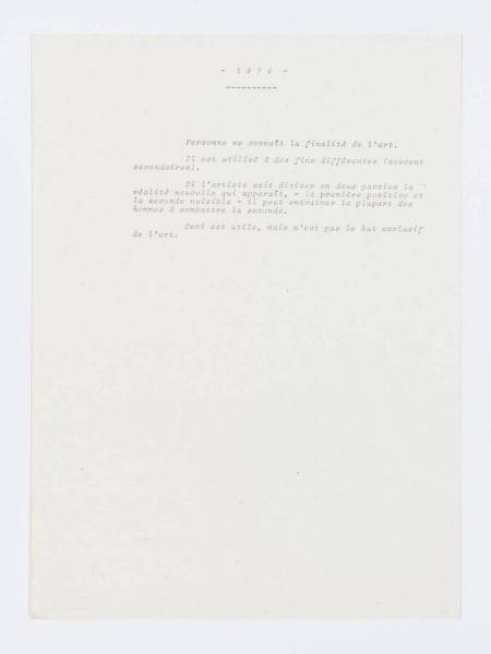 Personne ne connaît la finalité de l’art. (manifest), 1974