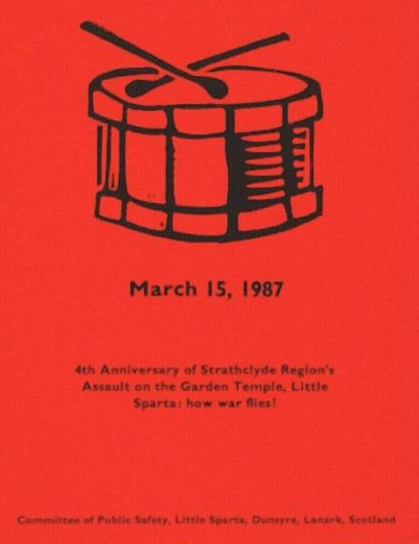 Card for the 4th Anniversary of Strathclyde Region's Assault on the Garden Temple, Little Sparta, 1987