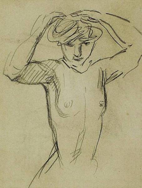 Half-Length Portrait of a Naked Woman Holding Hands above Her Head