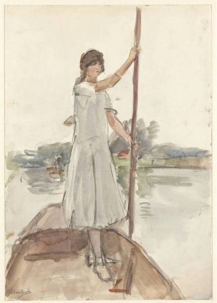 Young Woman Standing in a Boat on the Thames, Richmond