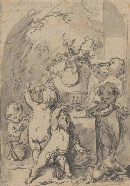 pen and brown and black ink, brush and grey ink, over black chalk, on brown paper