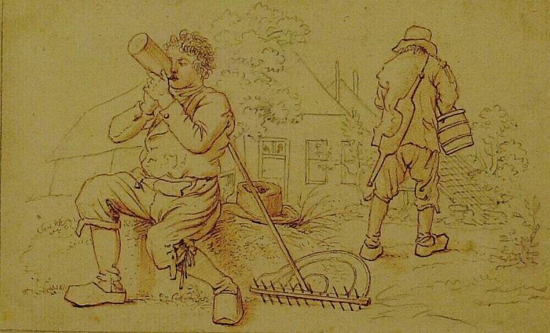 Drinkende boerenknecht, een boer met een juk, late 18th - early 19th century