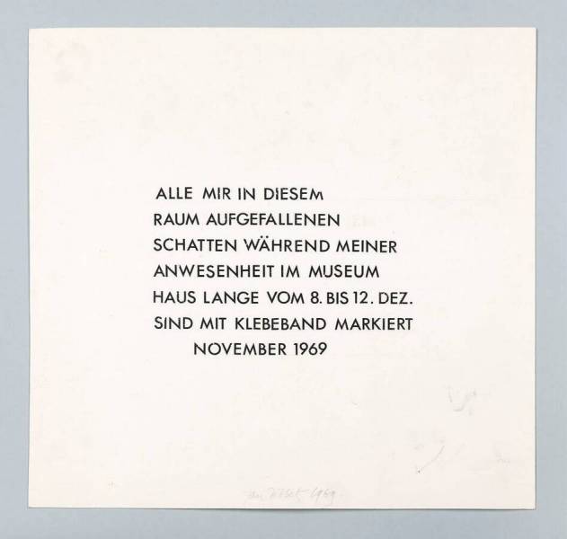 Alle mir in diesem Raum aufgefallenen Schatten während meiner Anwesenheit im Museum Haus Lange vom 8 bis 12 Dez. sind mit Klebeband markiert, 1969