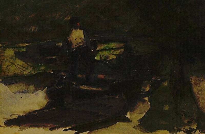 Vaart met een man op een platte schuit, c. 1884